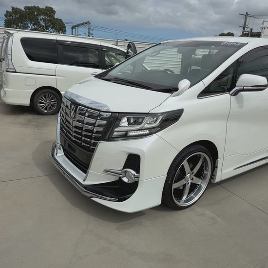 Technology features include an Alpine infotainment system, reverse camera, multifunction steering wheel, smart key with push-button start, digital rear-view mirror dash camera, and multiple driver-assist features. The Alphard is renowned worldwide for its smooth ride quality, excellent build quality, and exceptional interior space.